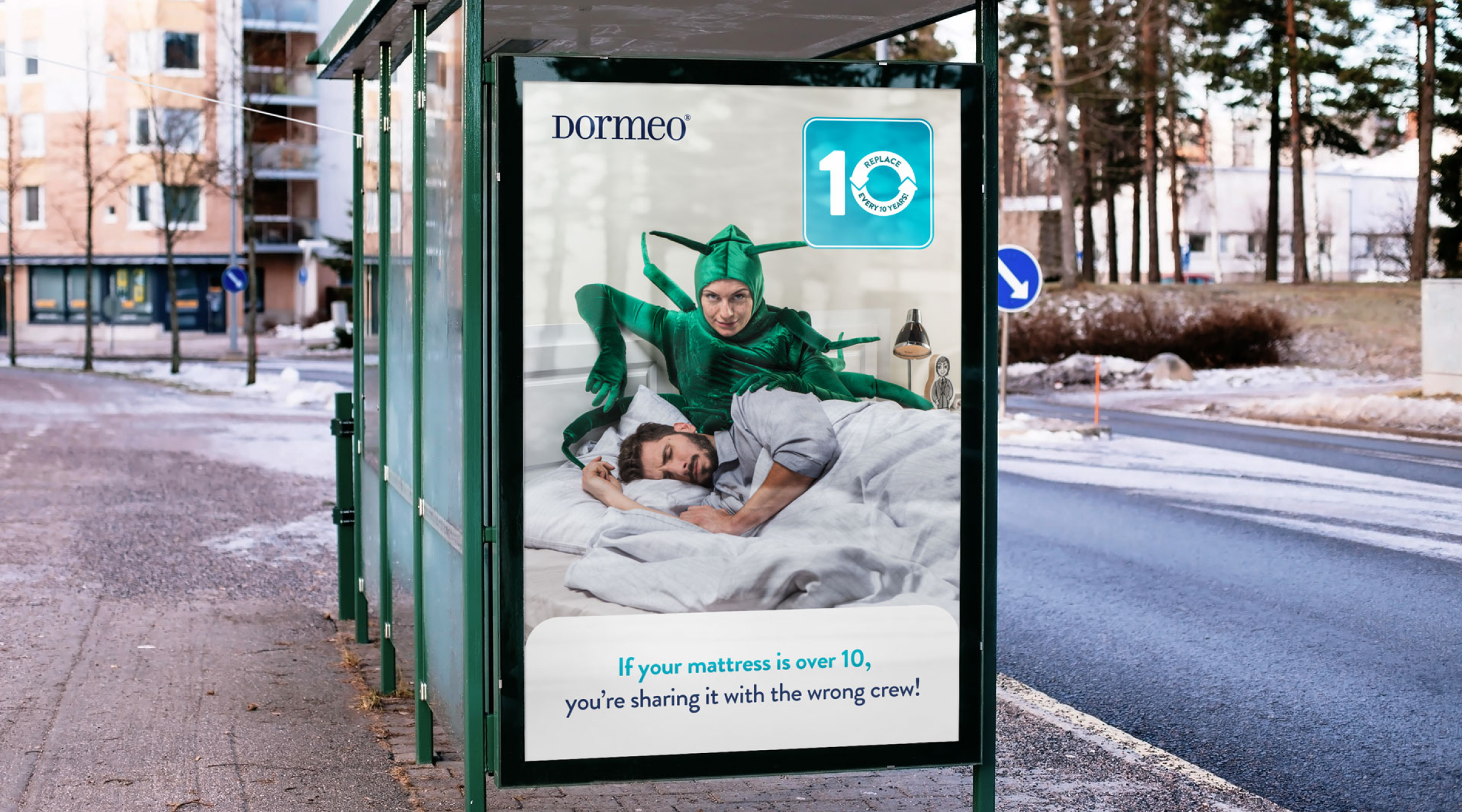 A TV and print campaign for Dormeo international brand, aiming to inform, educate and raise general audience awareness on the potential health risks of using older mattresses due to dust-mite infestation. The concept for this campaign revolves around human-size, non-malicious, dust mites as core characters.